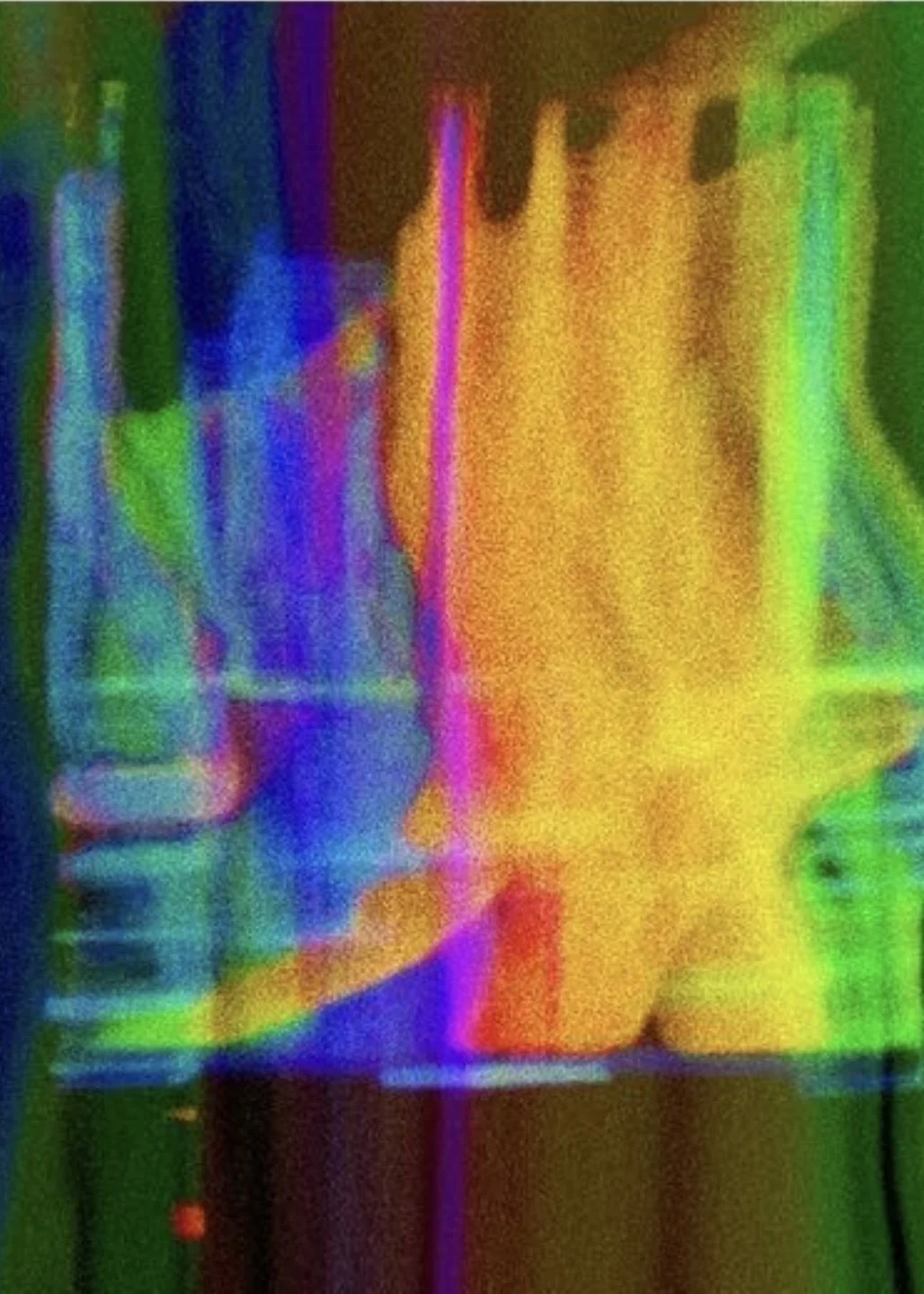 Realisation: Through experimentation with coloured light using a slow shutter technique, allowing motion blur and image smearing to occur visual artefacts such as colour bleeding and loss of clarity were produced. This became central to the work’s investigation of distortion. These early visual experiments established a language of degradation and instability, drawing parallels to digital entropy and the breakdown of visual information within computational systems.