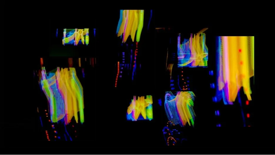 Starting Process: Informed by theoretical research and artist inspiration, the project began with an exploration of colour and light as distorted visual signals. I started by photographing coloured light using a slow shutter technique, allowing motion blur and image smearing to occur. This process produced visual artefacts such as colour bleeding and loss of clarity, which became central to the work’s investigation of distortion. These early visual experiments established a language of degradation and instability, drawing parallels to digital entropy and the breakdown of visual information within computational systems.